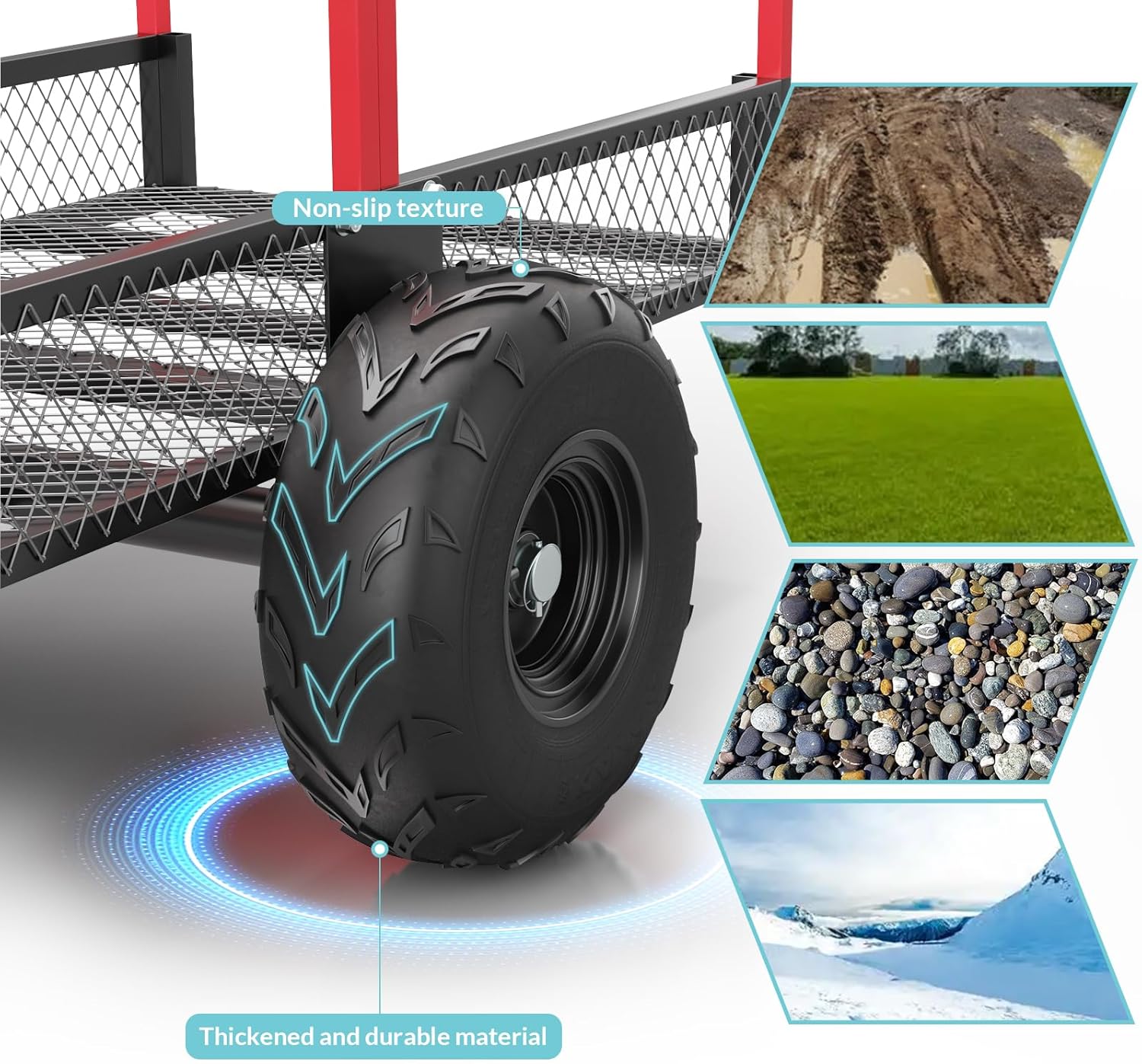 - High-Capacity Hauling: Boost your efficiency with our ATV trailer, offering a spacious 15 cubic feet of capacity and railings on all sides. Perfect for collecting large amounts of wood, soil, or yard waste, it minimizes the need for multiple trips