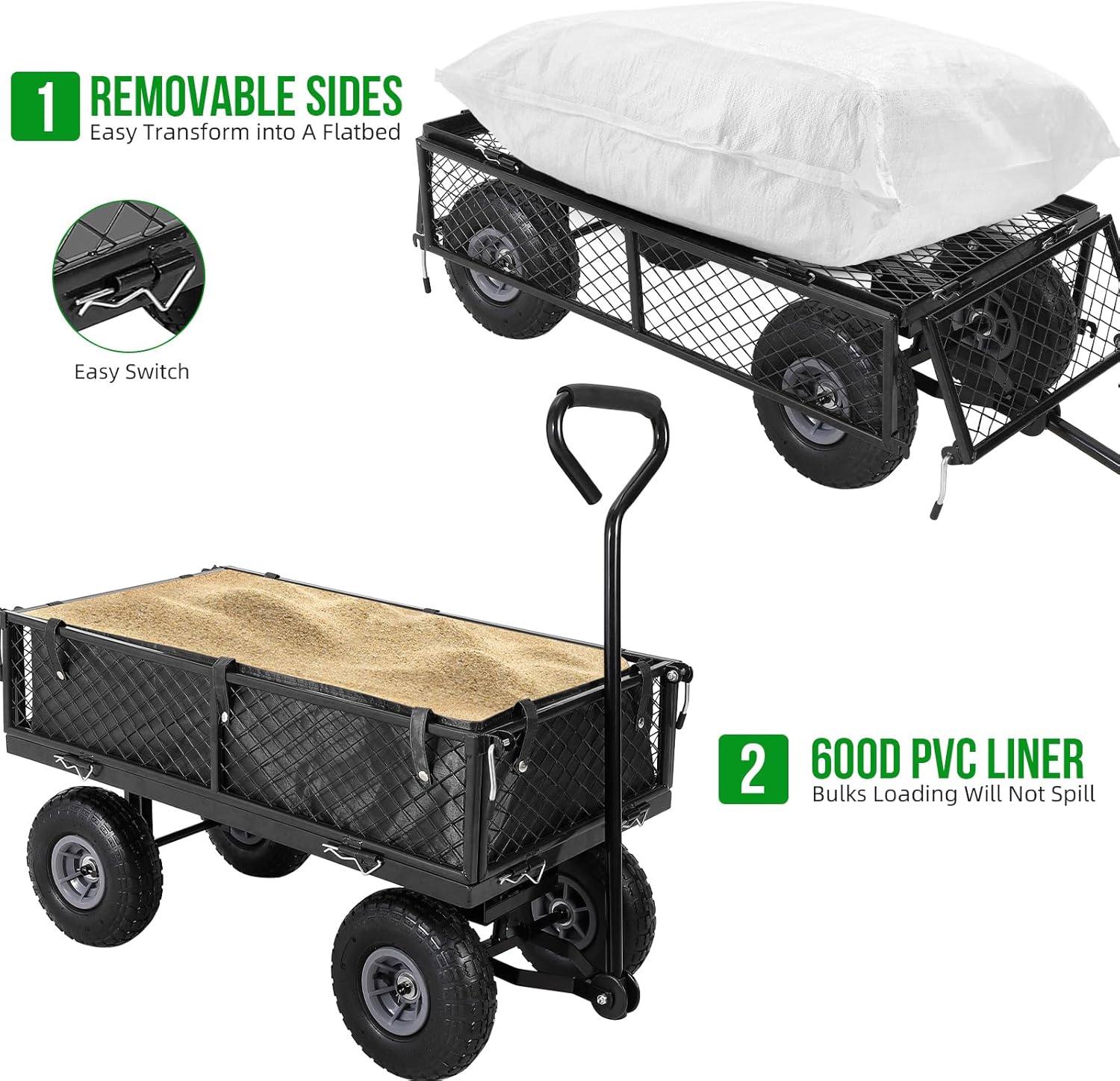 Heavy Duty Steel Garden Cart Folding Utility Wagon with Removable Cart Liner, 500 Lbs Capacity